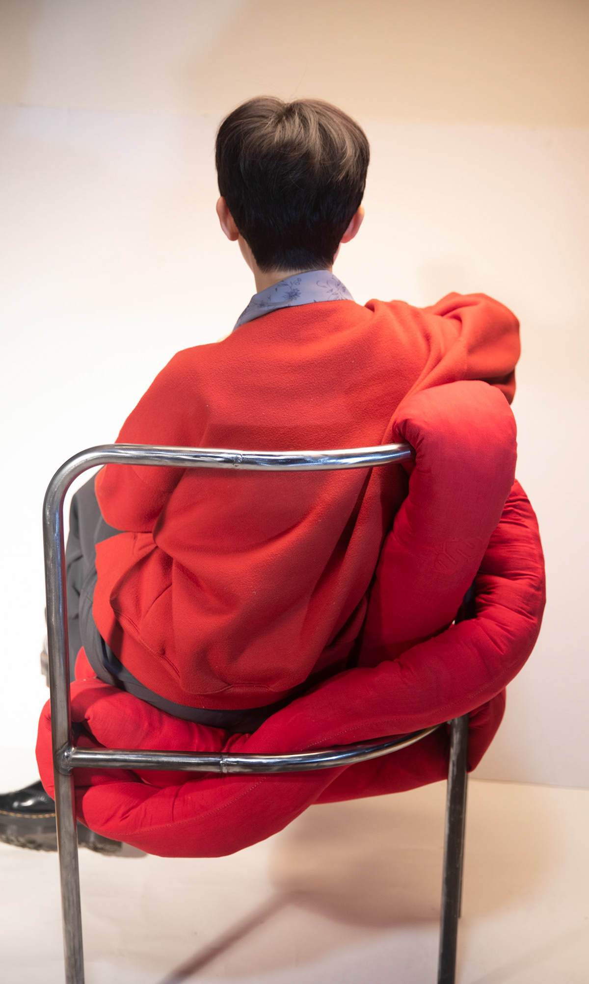 Designed to be arranged and rearranged I aimed to create an upholstered chair that was modern and futuristic-looking in form. But have an inviting enough function, for whoever would sit in the chair to adjust it how they see fit.
